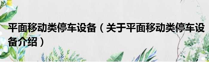 平面移動類停車設備(關于平面移動類停車設備介紹)