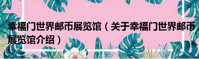 幸福門世界郵幣展覽館(關于幸福門世界郵幣展覽館介紹)