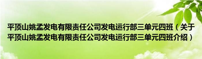 平頂山姚孟發電有限責任公司發電運行部三單元四班(關于平頂山姚孟發電有限責任公司發電運行部三單元四班介紹)