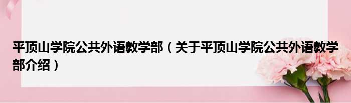 平頂山學院公共外語教學部(關于平頂山學院公共外語教學部介紹)