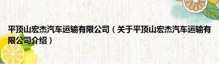平頂山宏杰汽車運輸有限公司(關于平頂山宏杰汽車運輸有限公司介紹)