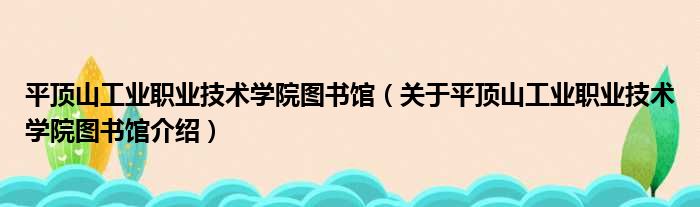 平頂山工業職業技術學院圖書館(關于平頂山工業職業技術學院圖書館介紹)