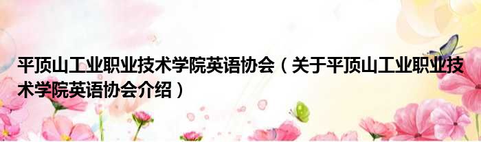 平頂山工業職業技術學院英語協會(關于平頂山工業職業技術學院英語協會介紹)