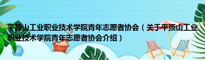 平頂山工業職業技術學院青年志愿者協會(關于平頂山工業職業技術學院青年志愿者協會介紹)