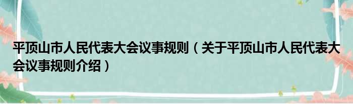 平頂山市人民代表大會議事規則(關于平頂山市人民代表大會議事規則介紹)