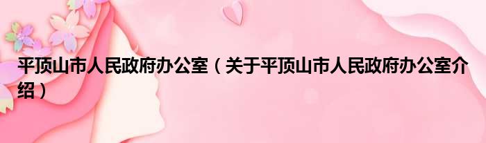 1、 平頂山市人民政府辦公室是平頂山市人民政府設立的職能部門。