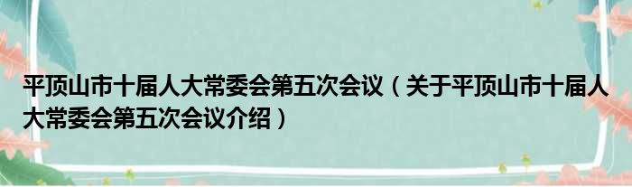 平頂山市十屆人大常委會第五次會議(關于平頂山市十屆人大常委會第五次會議介紹)
