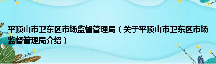 平頂山市衛東區市場監督管理局(關于平頂山市衛東區市場監督管理局介紹)
