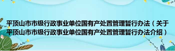平頂山市市級行政事業單位國有產處置管理暫行辦法(關于平頂山市市級行政事業單位國有產處置管理暫行辦法介紹)