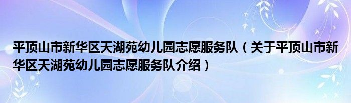平頂山市新華區天湖苑幼兒園志愿服務隊(關于平頂山市新華區天湖苑幼兒園志愿服務隊介紹)