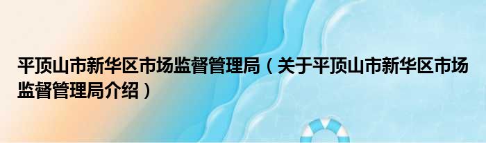 平頂山市新華區市場監督管理局(關于平頂山市新華區市場監督管理局介紹)