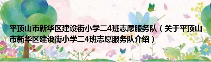 平頂山市新華區建設街小學二4班志愿服務隊(關于平頂山市新華區建設街小學二4班志愿服務隊介紹)