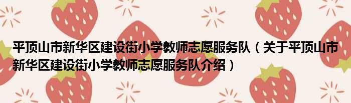 平頂山市新華區建設街小學教師志愿服務隊(關于平頂山市新華區建設街小學教師志愿服務隊介紹)