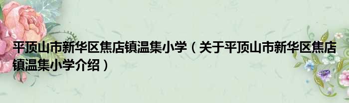 平頂山市新華區焦店鎮溫集小學(關于平頂山市新華區焦店鎮溫集小學介紹)