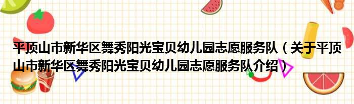 平頂山市新華區舞秀陽光寶貝幼兒園志愿服務隊(關于平頂山市新華區舞秀陽光寶貝幼兒園志愿服務隊介紹)