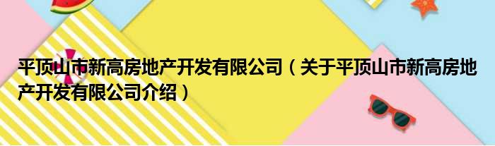 平頂山市新高房地產開發有限公司(關于平頂山市新高房地產開發有限公司介紹)