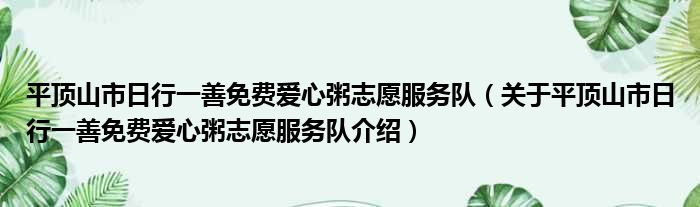 平頂山市日行一善免費愛心粥志愿服務隊(關于平頂山市日行一善免費愛心粥志愿服務隊介紹)