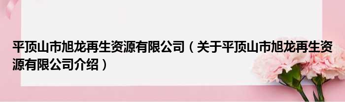 平頂山市旭龍再生資源有限公司(關于平頂山市旭龍再生資源有限公司介紹)