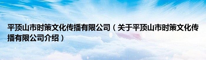 平頂山市時策文化傳播有限公司(關于平頂山市時策文化傳播有限公司介紹)