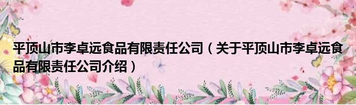 平頂山市李卓遠食品有限責任公司(關于平頂山市李卓遠食品有限責任公司介紹)