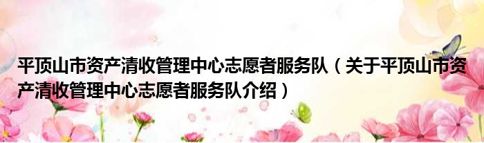 平頂山市資產清收管理中心志愿者服務隊(關于平頂山市資產清收管理中心志愿者服務隊介紹)