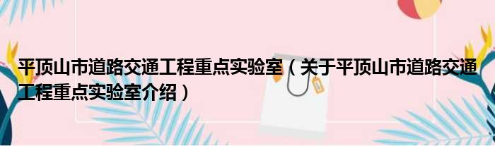 平頂山市道路交通工程重點實驗室(關于平頂山市道路交通工程重點實驗室介紹)
