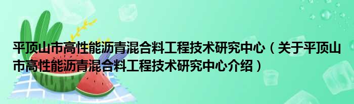 平頂山市高性能瀝青混合料工程技術研究中心(關于平頂山市高性能瀝青混合料工程技術研究中心介紹)