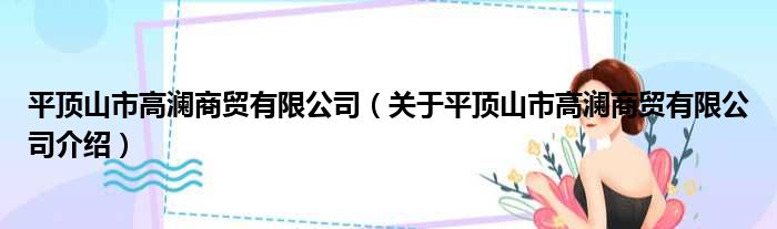 平頂山市高瀾商貿有限公司(關于平頂山市高瀾商貿有限公司介紹)
