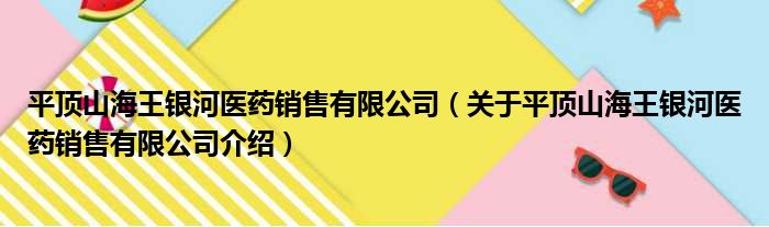 平頂山海王銀河醫藥銷售有限公司(關于平頂山海王銀河醫藥銷售有限公司介紹)