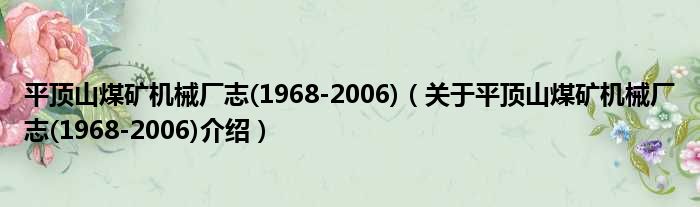 1、 《平頂山煤礦機械廠志(1968-2006)》是《平頂山煤礦機械廠志》編寫小組編纂的地方志。