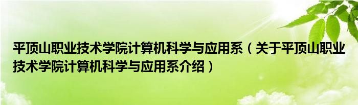 平頂山職業技術學院計算機科學與應用系(關于平頂山職業技術學院計算機科學與應用系介紹)