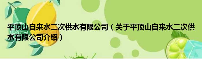 平頂山自來水二次供水有限公司(關于平頂山自來水二次供水有限公司介紹)