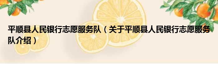 關于平順縣人民銀行志愿服務隊到此分享完畢,希望能幫助到您。