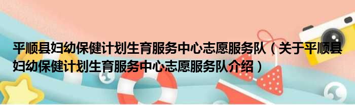 平順縣婦幼保健計劃生育服務中心志愿服務隊(關于平順縣婦幼保健計劃生育服務中心志愿服務隊介紹)