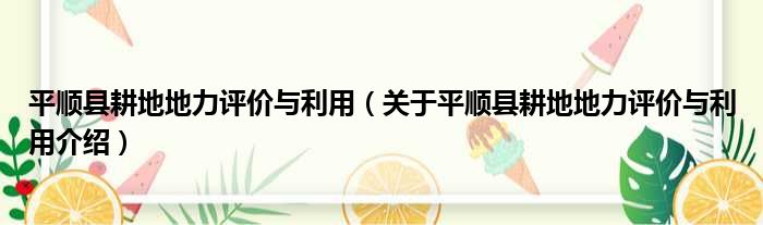 平順縣耕地地力評價與利用(關于平順縣耕地地力評價與利用介紹)