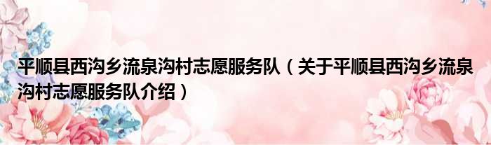 關于平順縣西溝鄉流泉溝村志愿服務隊到此分享完畢,希望能幫助到您。