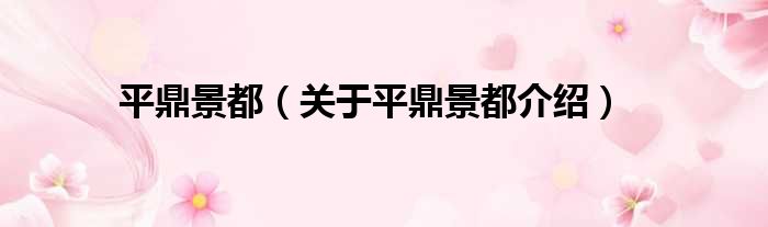 關于平鼎景都到此分享完畢,希望能幫助到您。
