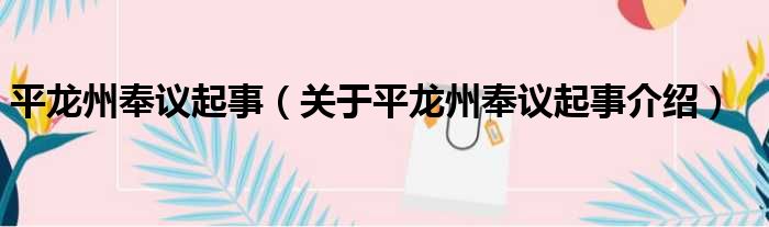 關于平龍州奉議起事到此分享完畢,希望能幫助到您。