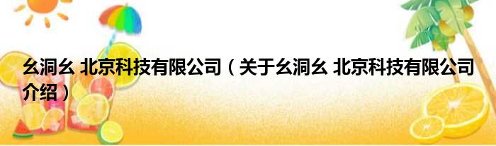 幺洞幺 北京科技有限公司(關于幺洞幺 北京科技有限公司介紹)