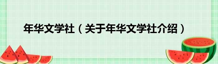 導讀 大家好,笑笑來為大家解答以上的問題。年華文學社,關于年華文學社介紹這個很多人還不知道,現在讓我們一起來看看吧!1、 年華文學社是太
