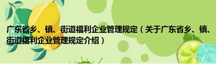 廣東省鄉、鎮、街道福利企業管理規定(關于廣東省鄉、鎮、街道福利企業管理規定介紹)