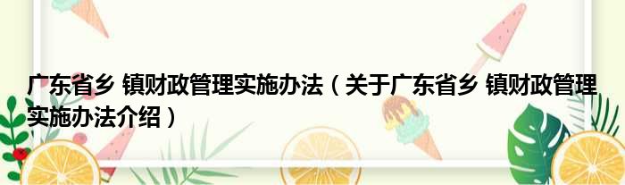 廣東省鄉 鎮財政管理實施辦法(關于廣東省鄉 鎮財政管理實施辦法介紹)