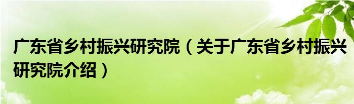 廣東省鄉村振興研究院(關于廣東省鄉村振興研究院介紹)