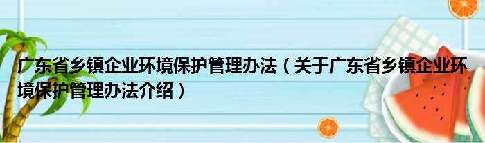 廣東省鄉鎮企業環境保護管理辦法(關于廣東省鄉鎮企業環境保護管理辦法介紹)