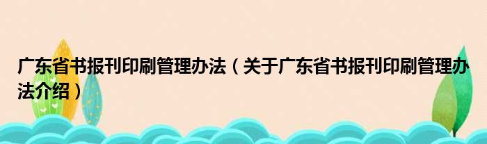 廣東省書報刊印刷管理辦法(關于廣東省書報刊印刷管理辦法介紹)