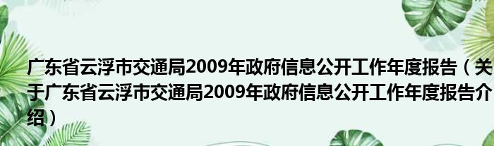 廣東省云浮市交通局2009年政府信息公開工作年度報告(關于廣東省云浮市交通局2009年政府信息公開工作年度報告介紹)