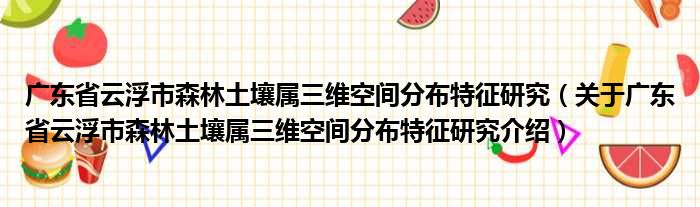 廣東省云浮市森林土壤屬三維空間分布特征研究(關于廣東省云浮市森林土壤屬三維空間分布特征研究介紹)