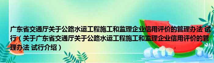 廣東省交通廳關于公路水運工程施工和監理企業信用評價的管理辦法 試行(關于廣東省交通廳關于公路水運工程施工和監理企業信用評價的管理辦法 試行介紹)
