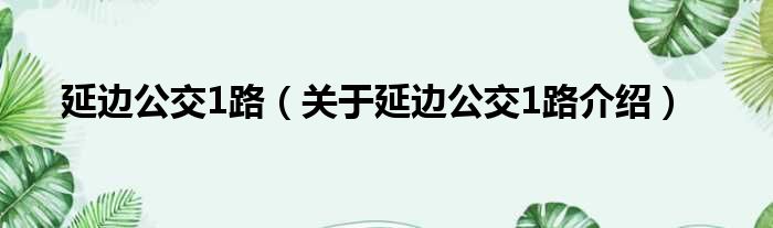 關于延邊公交1路到此分享完畢,希望能幫助到您。