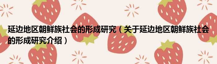 延邊地區朝鮮族社會的形成研究(關于延邊地區朝鮮族社會的形成研究介紹)